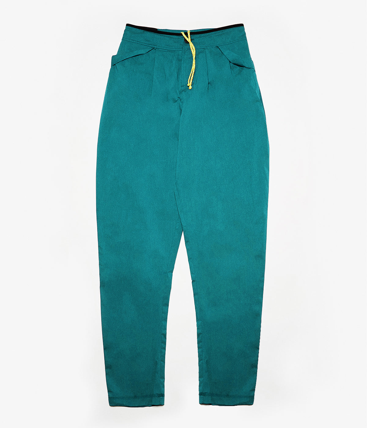 Asy-Pant is a carrot pant with flat pleated front pockets and 2 welt pockets on the back. The volume of the pant is on the front and the pant fits perfectly the bottom… which make a very nice mix of coolness and sexiness… This pant is high waisted and has, like every pant of Minuit Deux, an inside string that allows you to make it tighter to the waist. Asy-Pant is the best seller product of the brand. Fits for all.