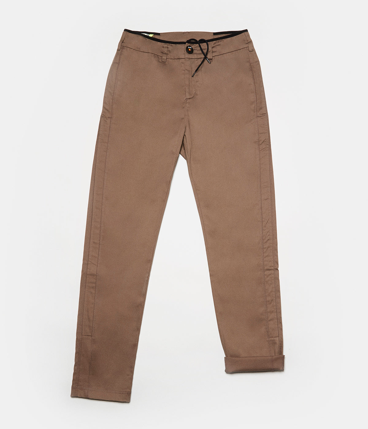 Bag-Pant2 is a slim pants with vertical cut on the back and "tuxedo" line on both sides. 2 vertical side pockets and 2 welt pockets with flap on the back. The cord in the waistline allows to wear the pants either high waisted or more baggy. A classic cut for Minuit Deux. Fits for all.