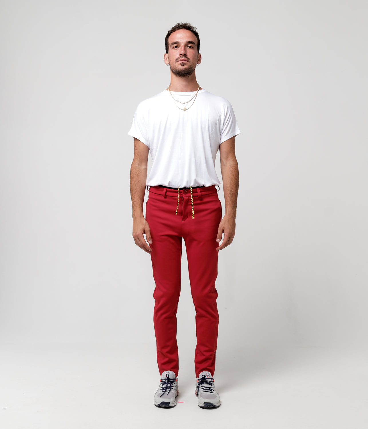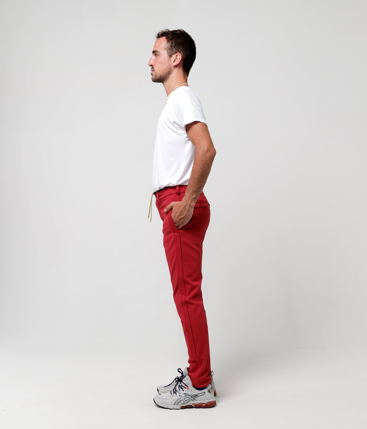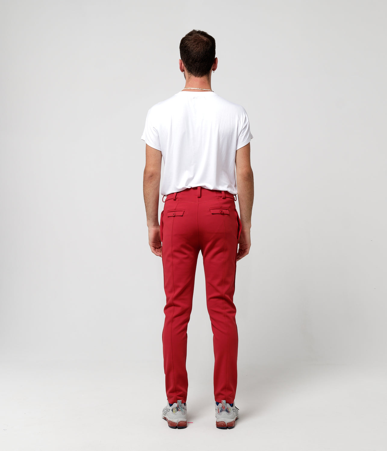 Bag-Pant3 is a slim pants with vertical cut on the back and "tuxedo" line on both sides. 2 vertical side pockets with zipper and 2 welt pockets with flap on the back. The cord in the waistline allows to wear the pants either high waisted or more baggy. A classic cut for B+B. Fits for all.