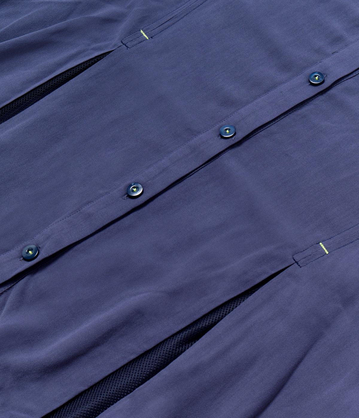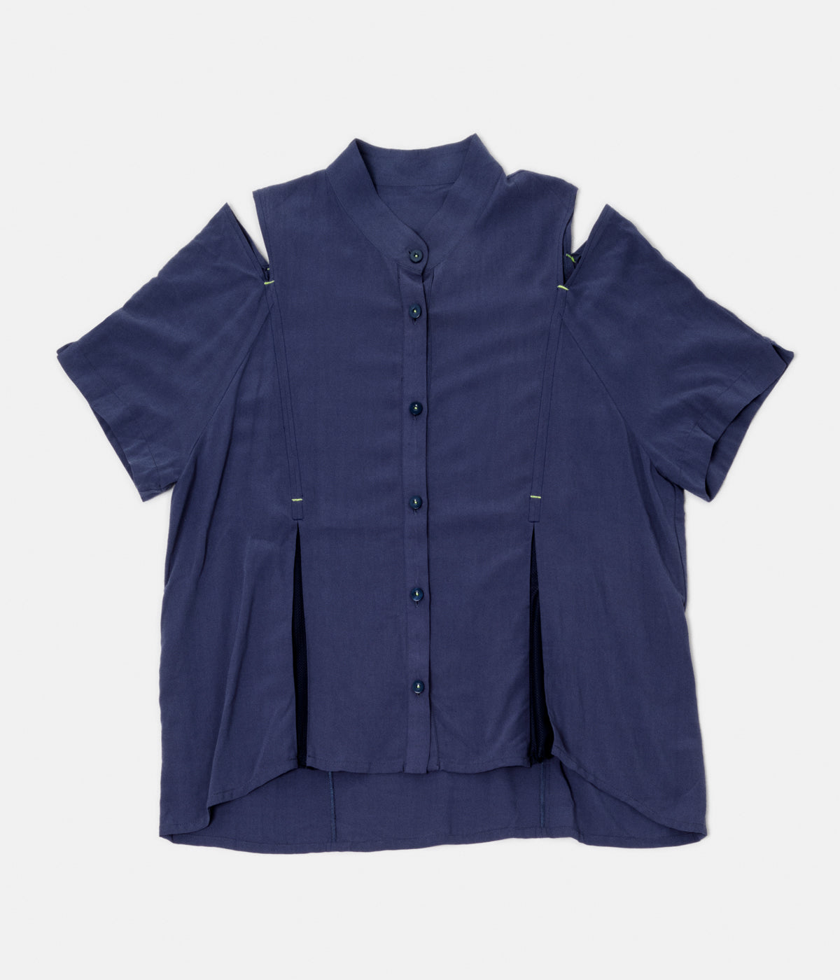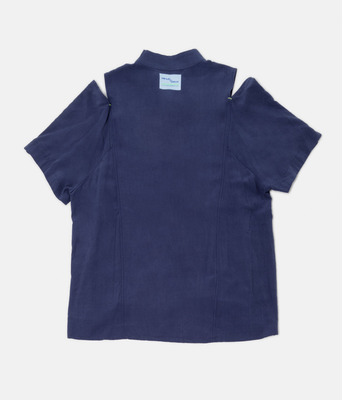 Built like a cube, this shirt with modern and uncompromising volumes reflects the non-conformist spirit of the brand... This unisex piece is full of details such as its mesh pleats or its raglan sleeve revealing the shoulder... To be worn open over a T-shirt or directly on the skin...