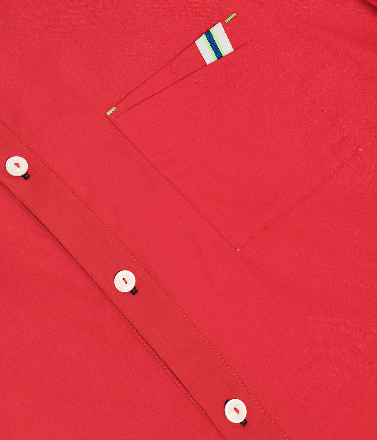 Formal-Shirt is a short sleeve shirt with a loose fit. The closing is made by 10mm pearl buttons and you gladly wear the shirt on your trouser as you have a bias at the bottom of the shirt. The shirt includes a Windsor collar and a pocket on the left side. Sleeves are beautifully sewed with 5 overstitches.