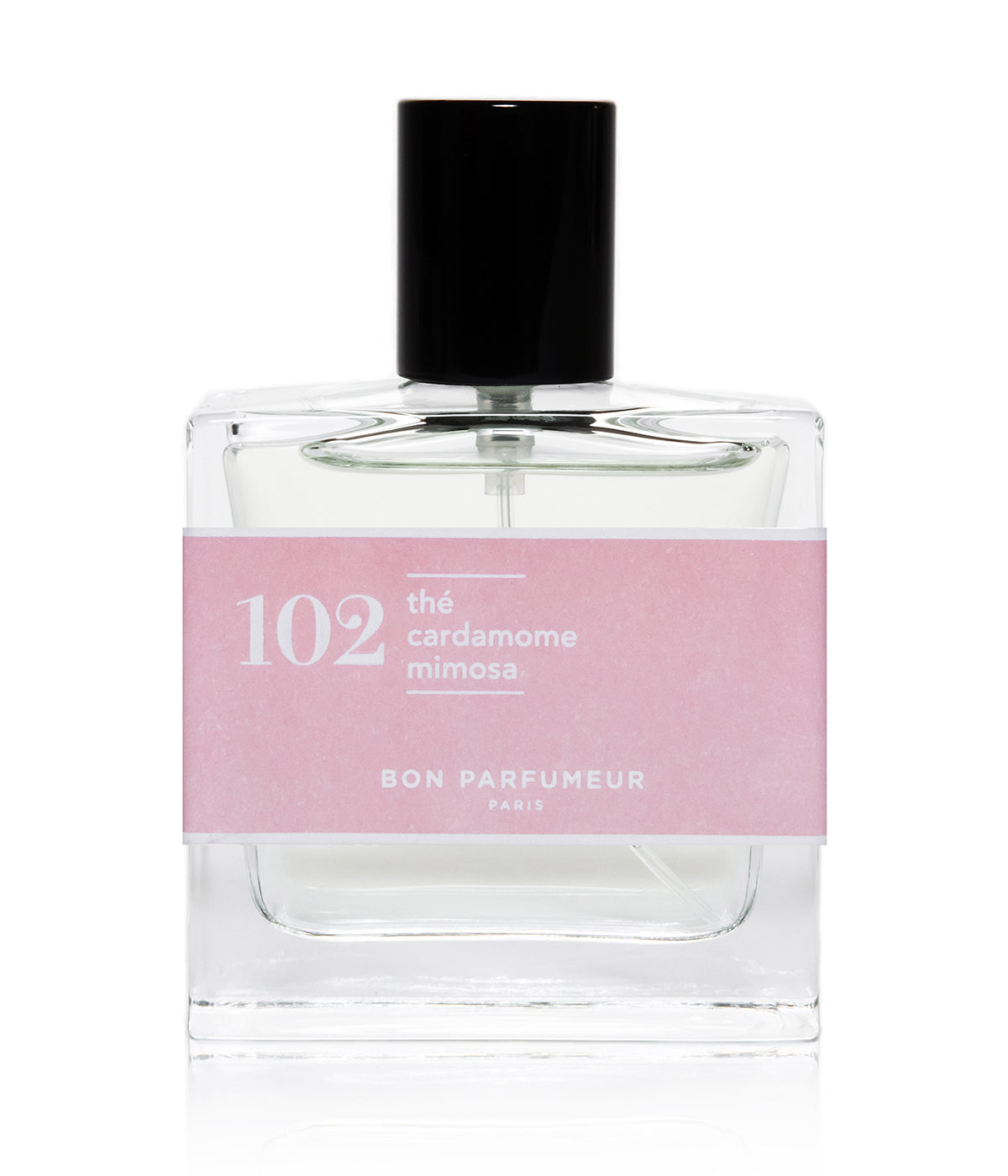 A refreshing citrus explosion with elements of bergamot and lime, the heart note of 102 builds around the aroma of green tea and mimosa, and reveals a touch of jasmine. With time, it develops a clean, aqueous scent.