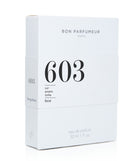 A bold fragrance with a dark and intense opening, combining spicy and floral scents. The incense adds freshness and mystery to the heart of the perfume. Notes of Leather and Tonka create a sensual dimension to this eau de parfum. Both warm and green-amber, this woody fragrance 603 will surprise you with its generosity.