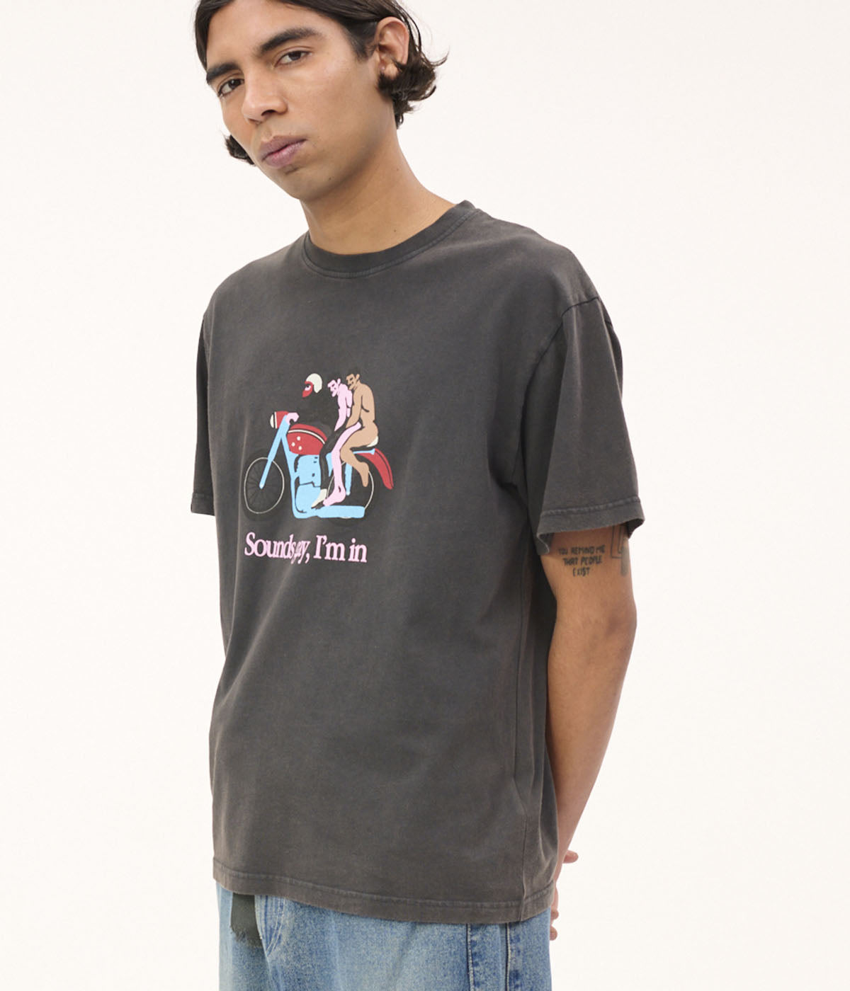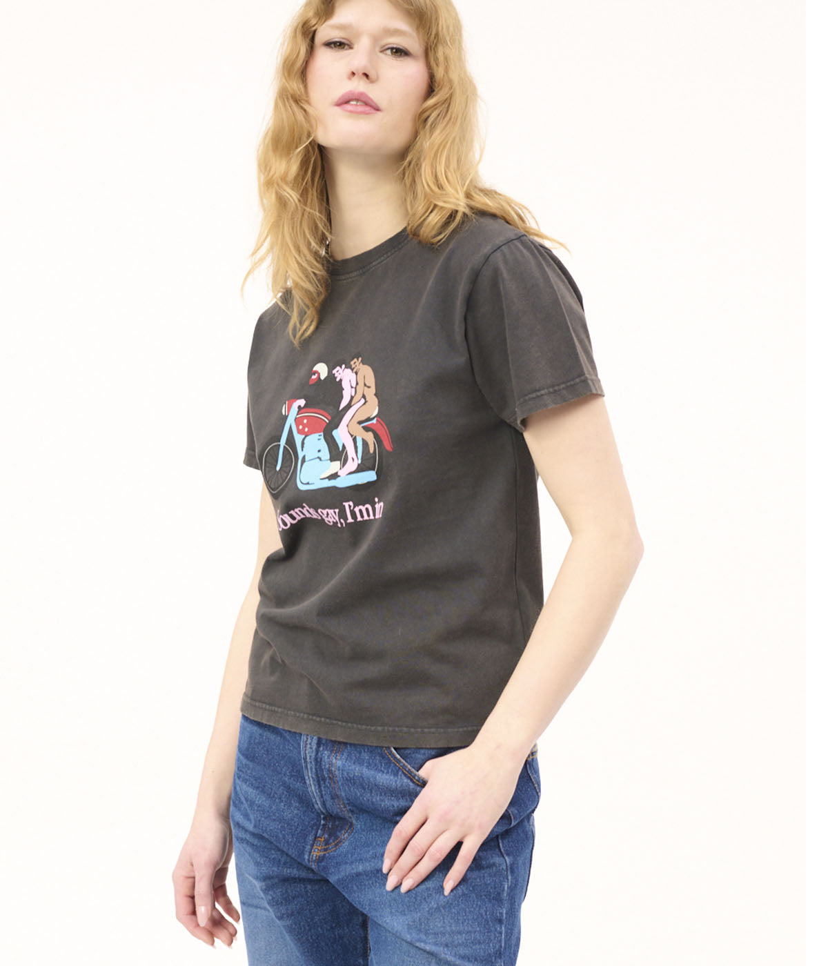 Boxy-fit short sleeve T-shirt in 100% organic cotton with embroidered front graphic.