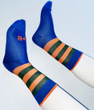 Bi-Oceane are crew socks. Stripe socks with neon colors finishing. the legs are made of Scottish cotton yarn and feet are made of microfiber. Microfiber is super comfortable, breathable, super resistant and easy care. Washable 30°C. Exist in size 1/ 36-40 and size 2/ 41-45