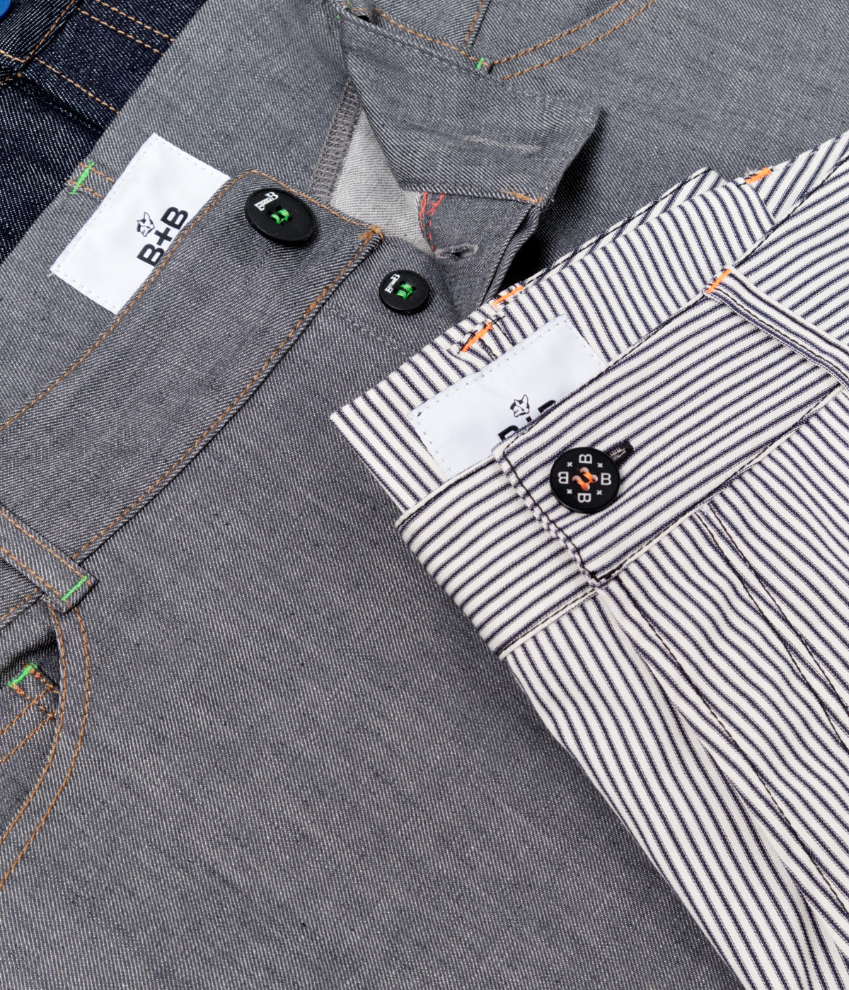 Easy-Belt-jeans is a tapered jean with wide thighs and slender legs. It has 2 gun pockets on the front and a ticket pocket on the right front. The belt is 5 cm high which allows the passage under the 7 loops to slide the belt of the desired size. On the back are 2 patch pockets on the buttocks.