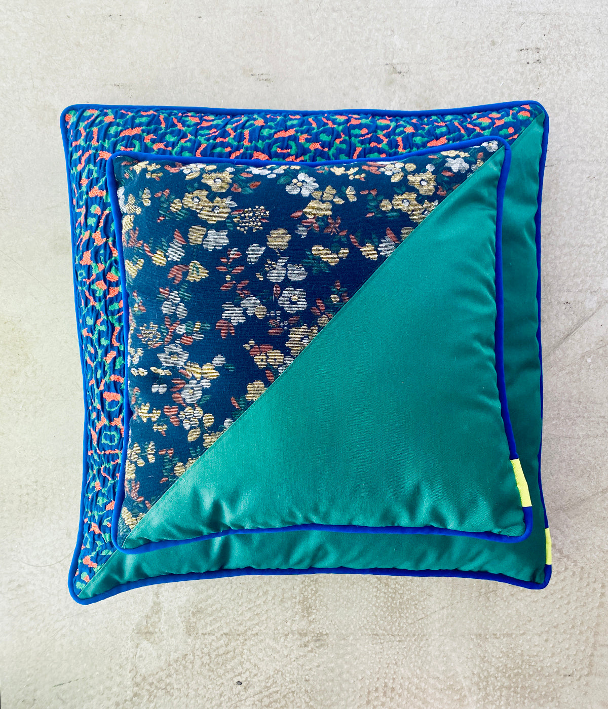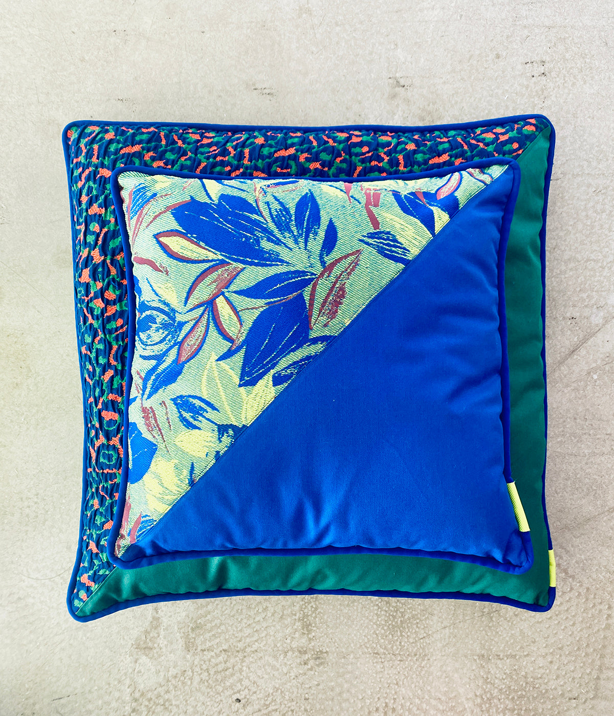 The design is made by Fabrice Couturier. Dead stocks of fabrics are used for the production. Cushions can be customized on request to fit perfectly your home.