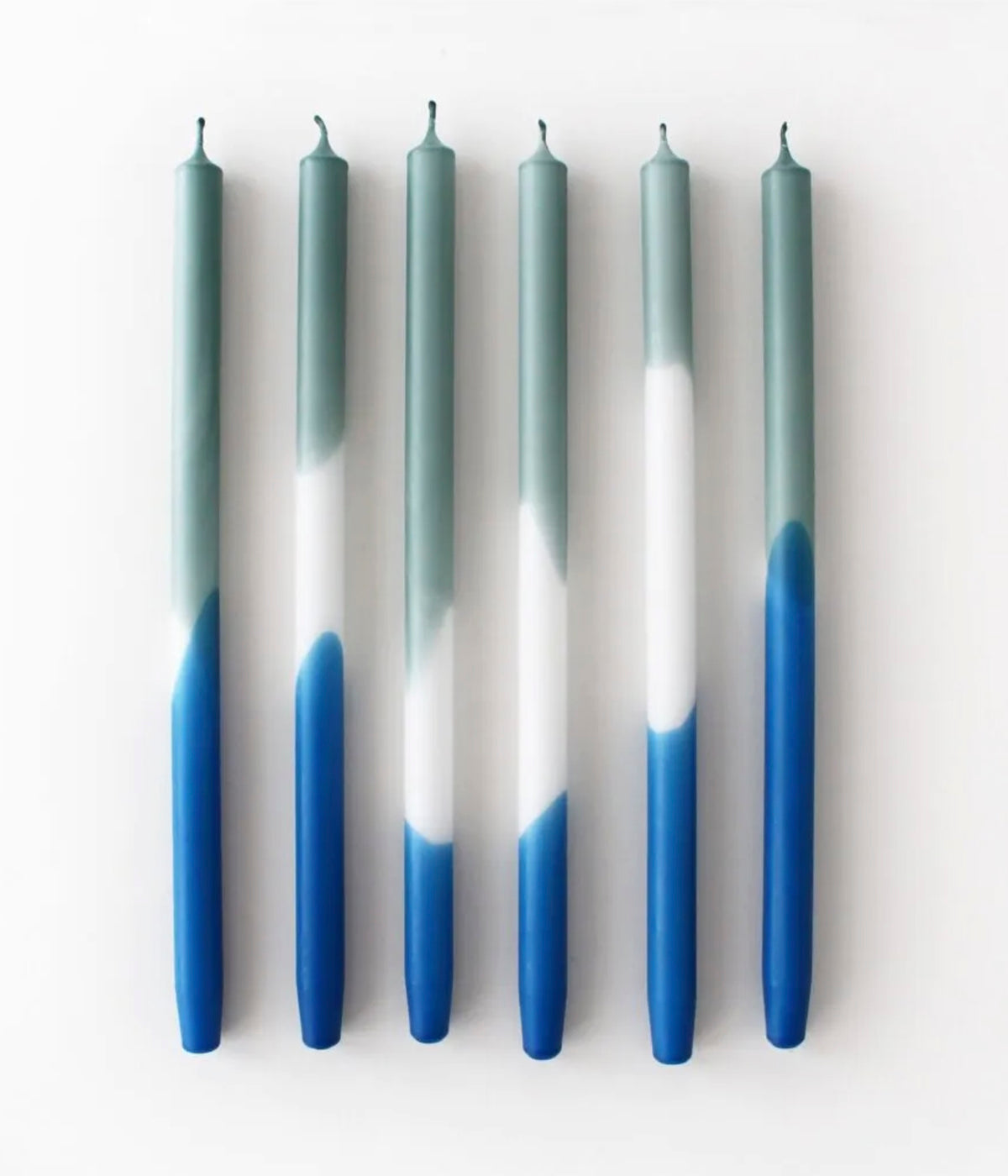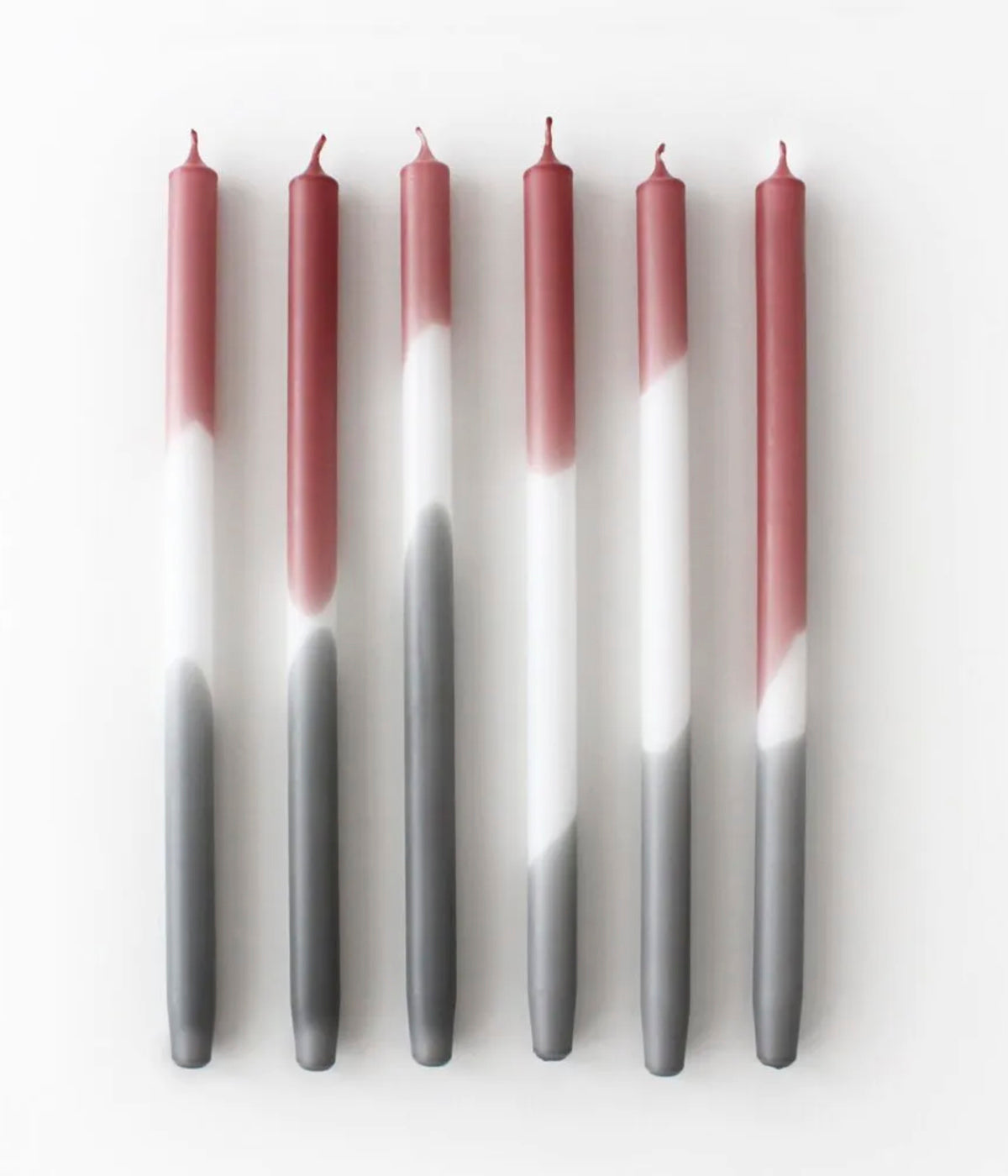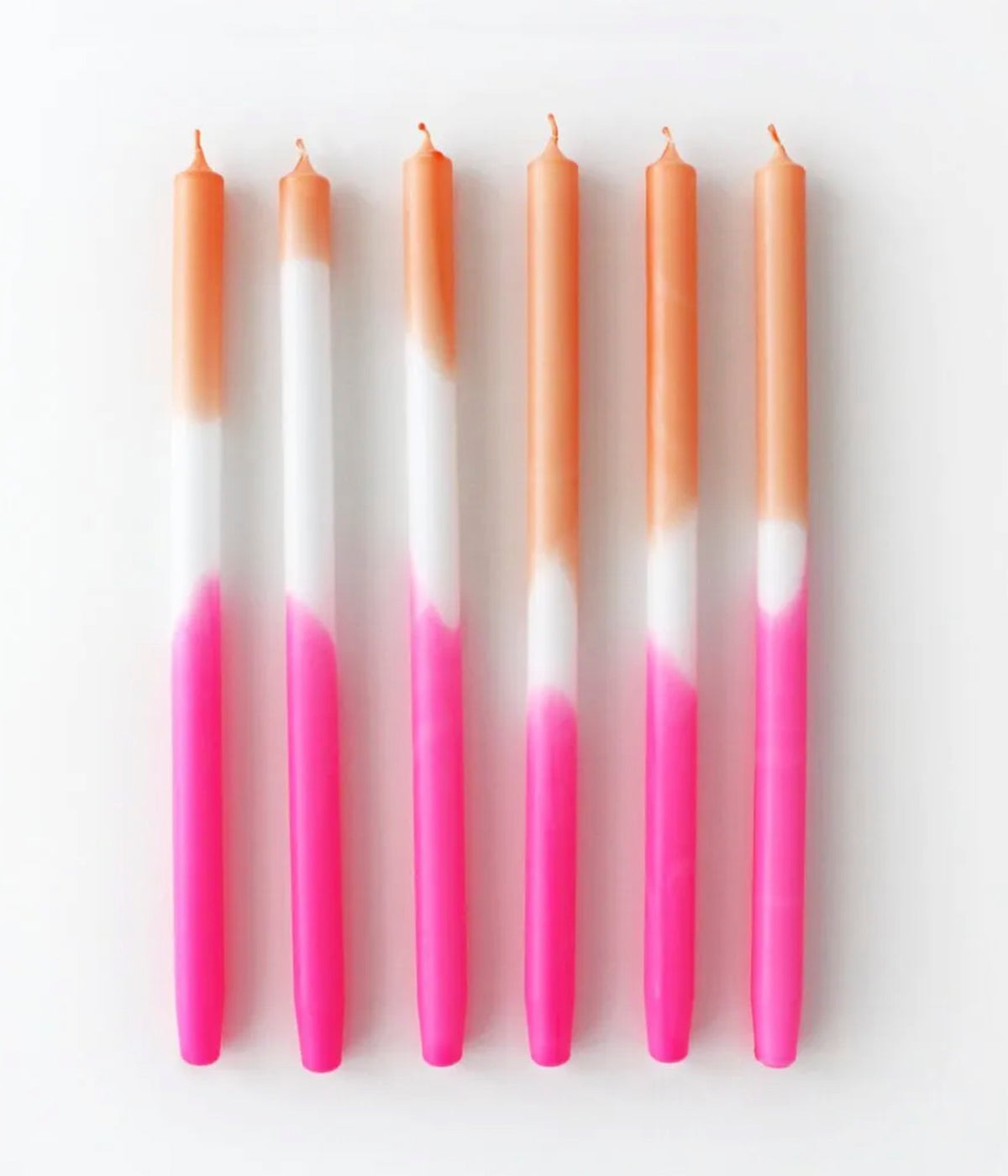 POPPY PUNCH candles; each of them get a dip by hand and it is important to know; each dip dye varies. That makes this playful design special and creates a unique look when they are styled as a group of candles.