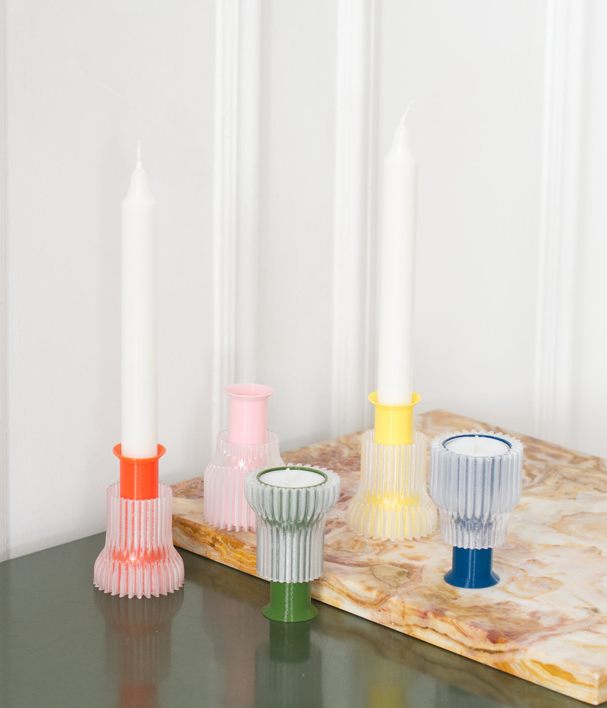 2.21 is a double candleholder, it can accommodate both a tealight and a candle depending on the face on which it is placed.