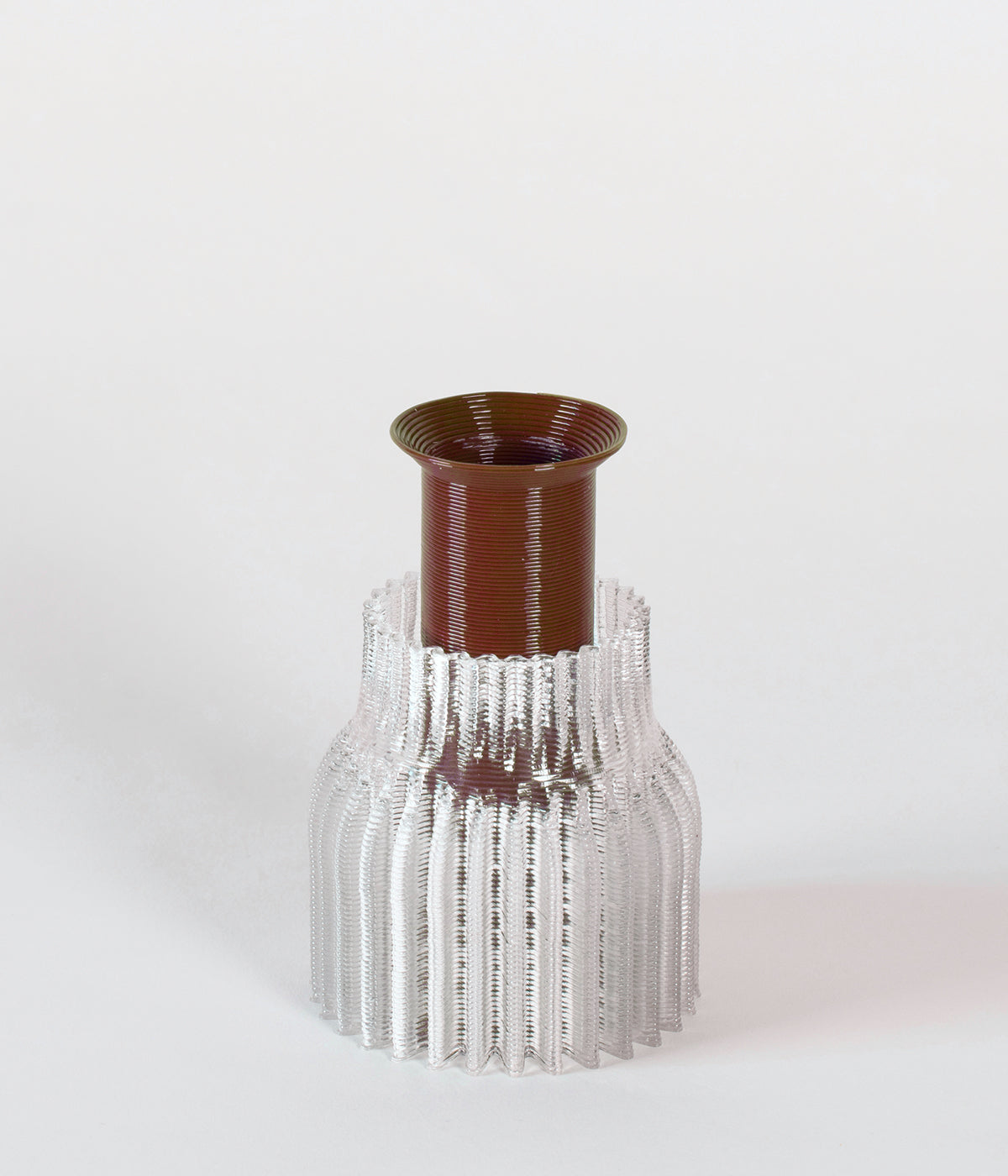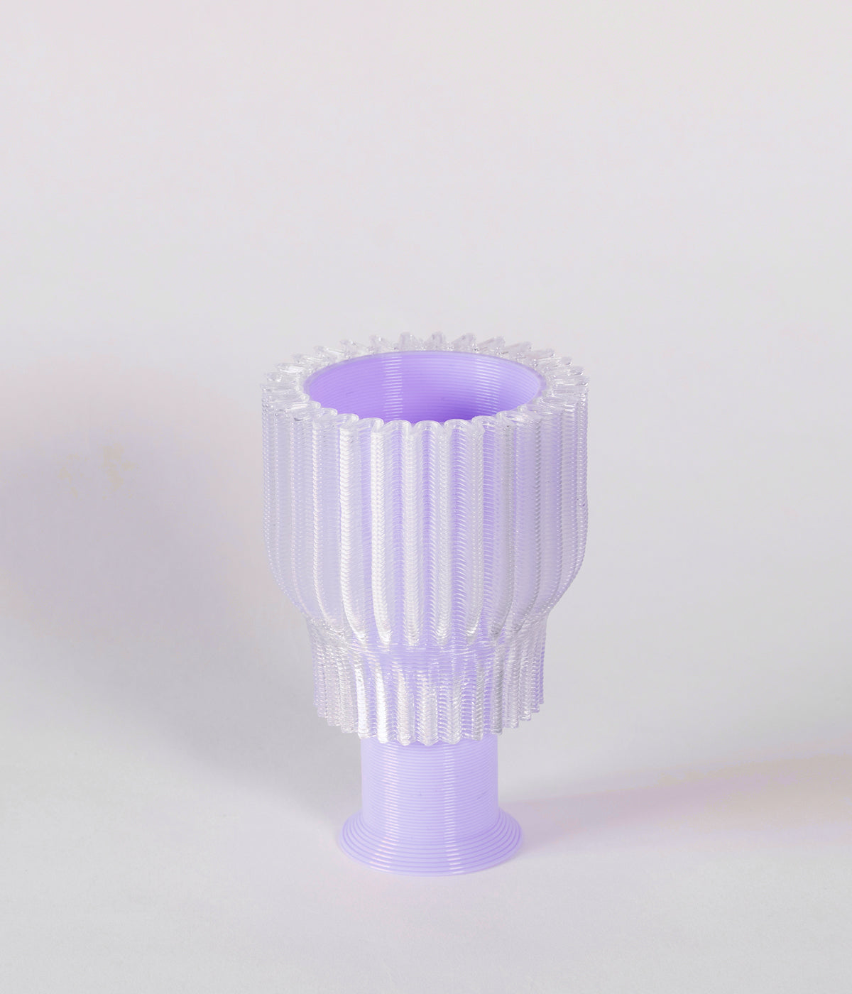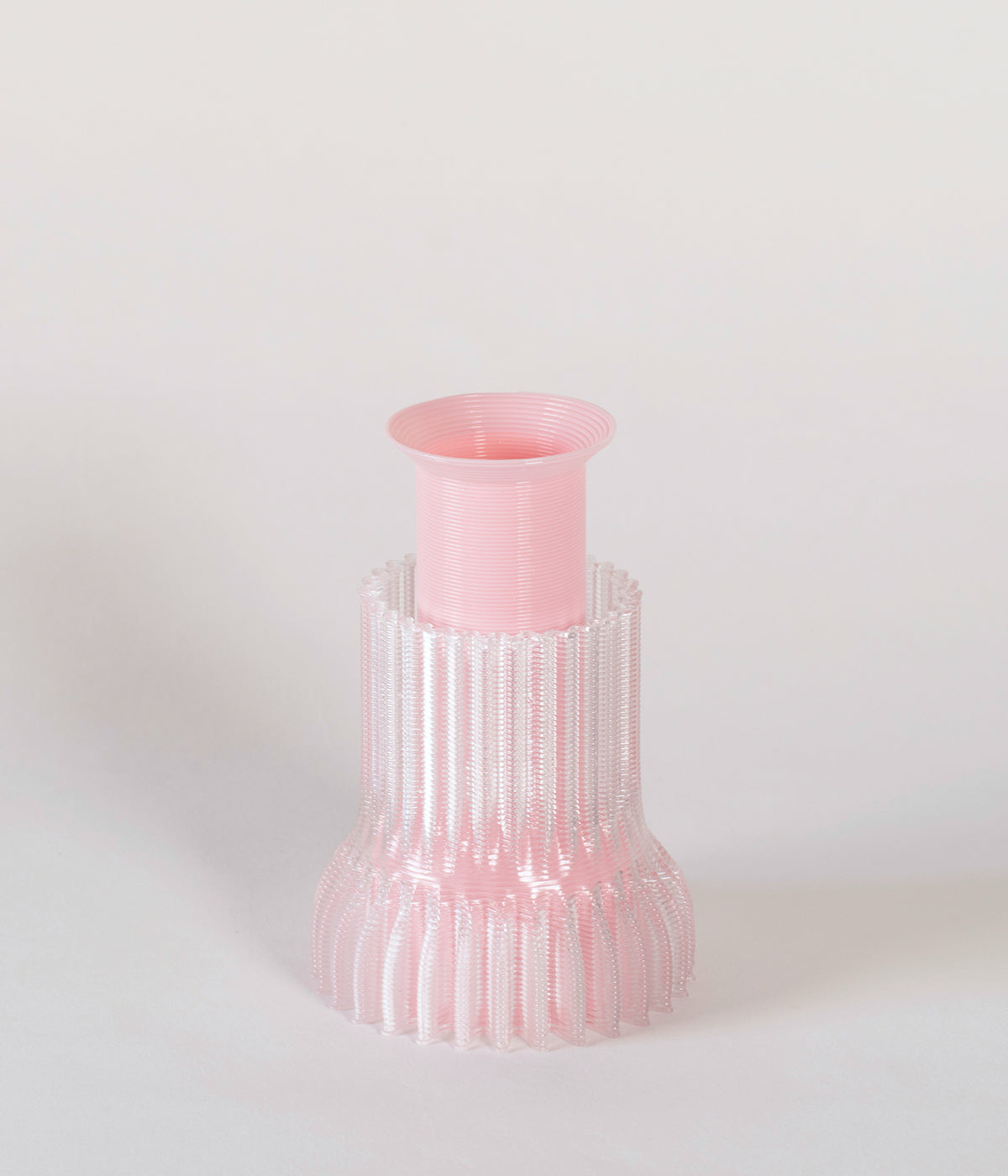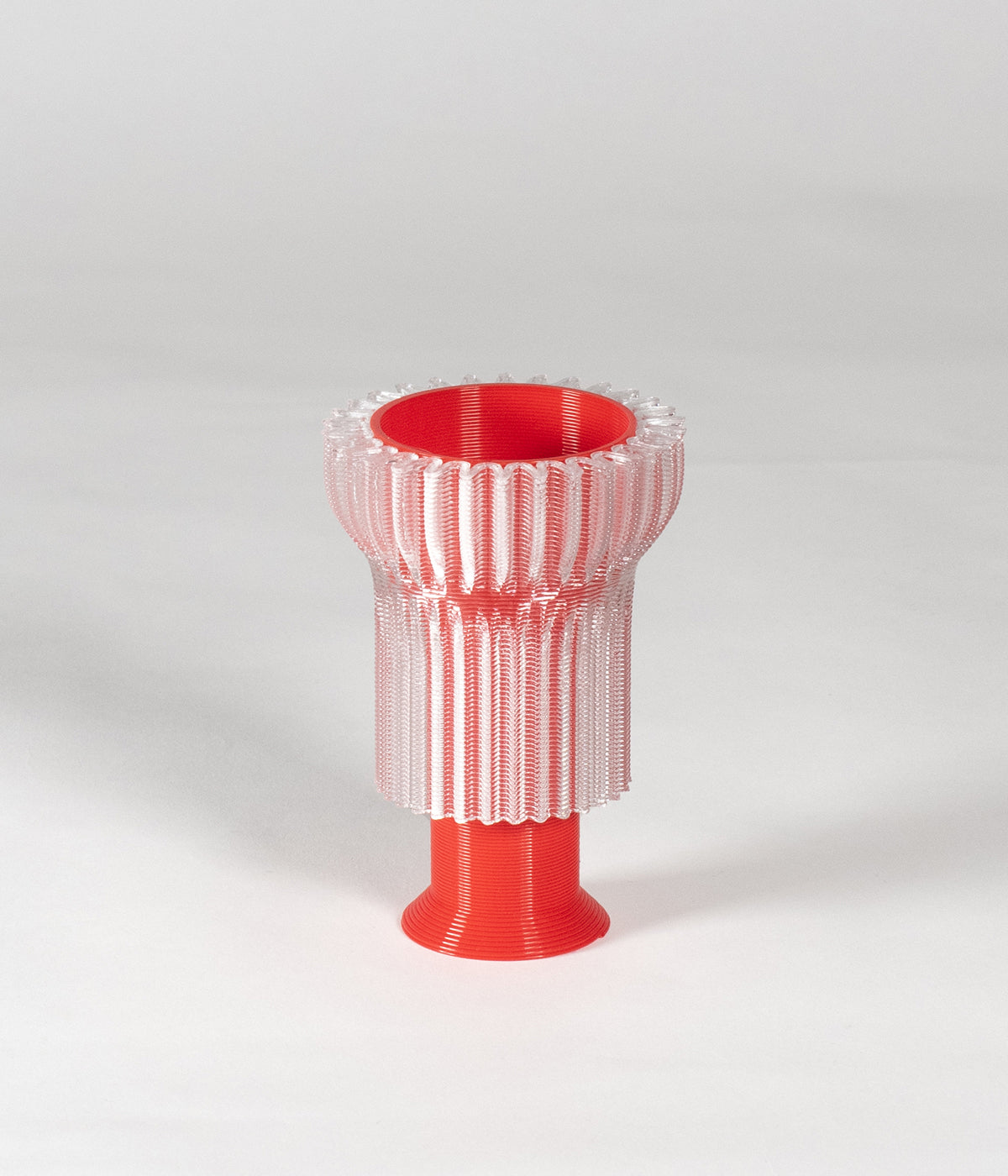 This object is made in 3D printing in our studio from recycled and recyclable plastic bottles as well as industrially compostable bioplastic made from corn starch (rPETG + PLA).