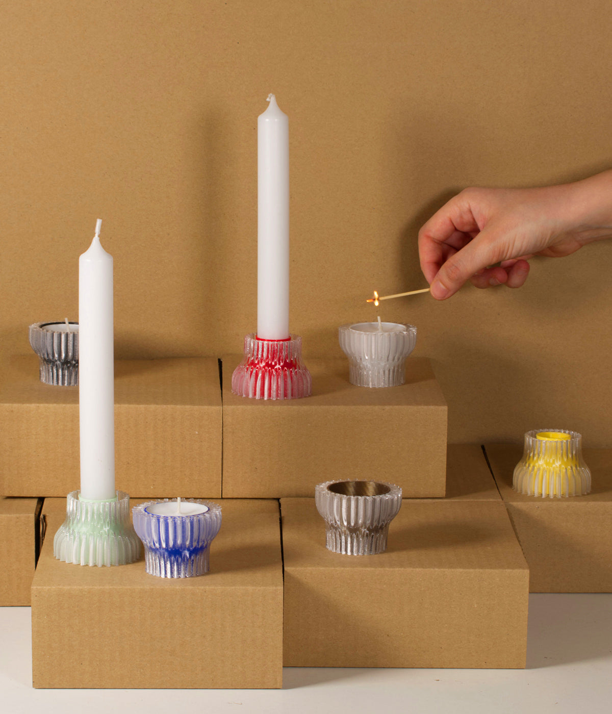 2.20 is a double candleholder, it can accommodate both a tealight and a candle depending on the face on which it is placed.