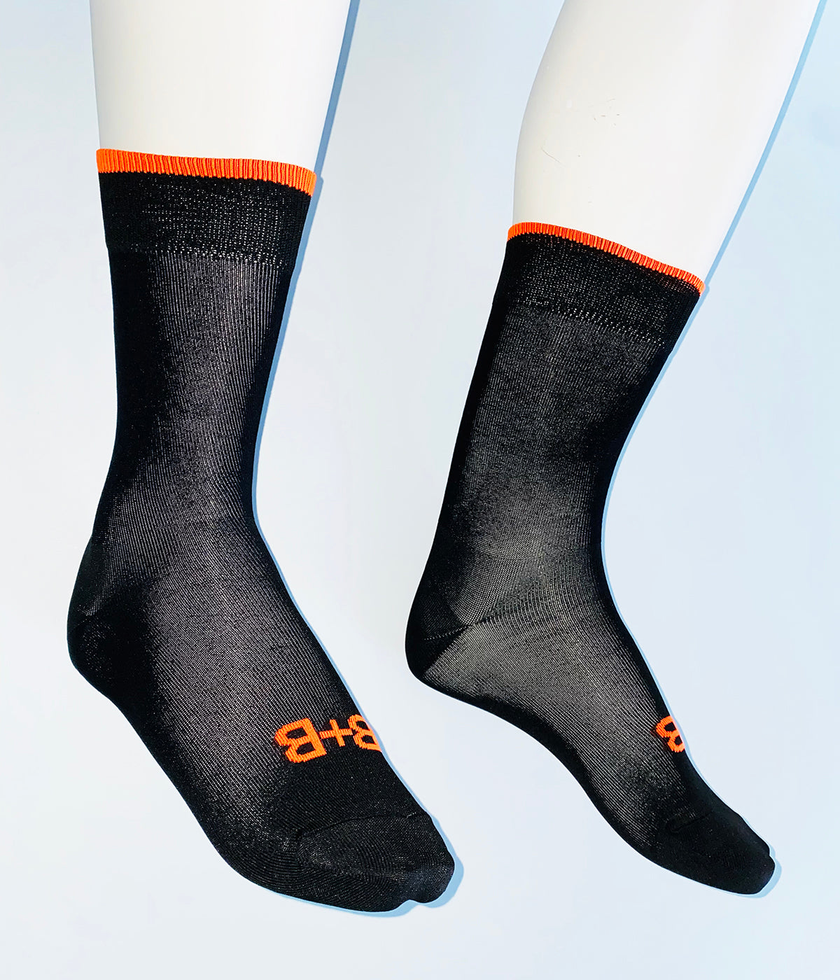 Bi-Pure are crew socks. Plain socks with neon orange finishing. the legs are made of scottish cotton yarn and feet are made of microfiber. Microfiber is super comfortable, breathable, super resistant and easy care. Washable 30°C. Exist in size 1/ 35-40 and size 2/ 41-46