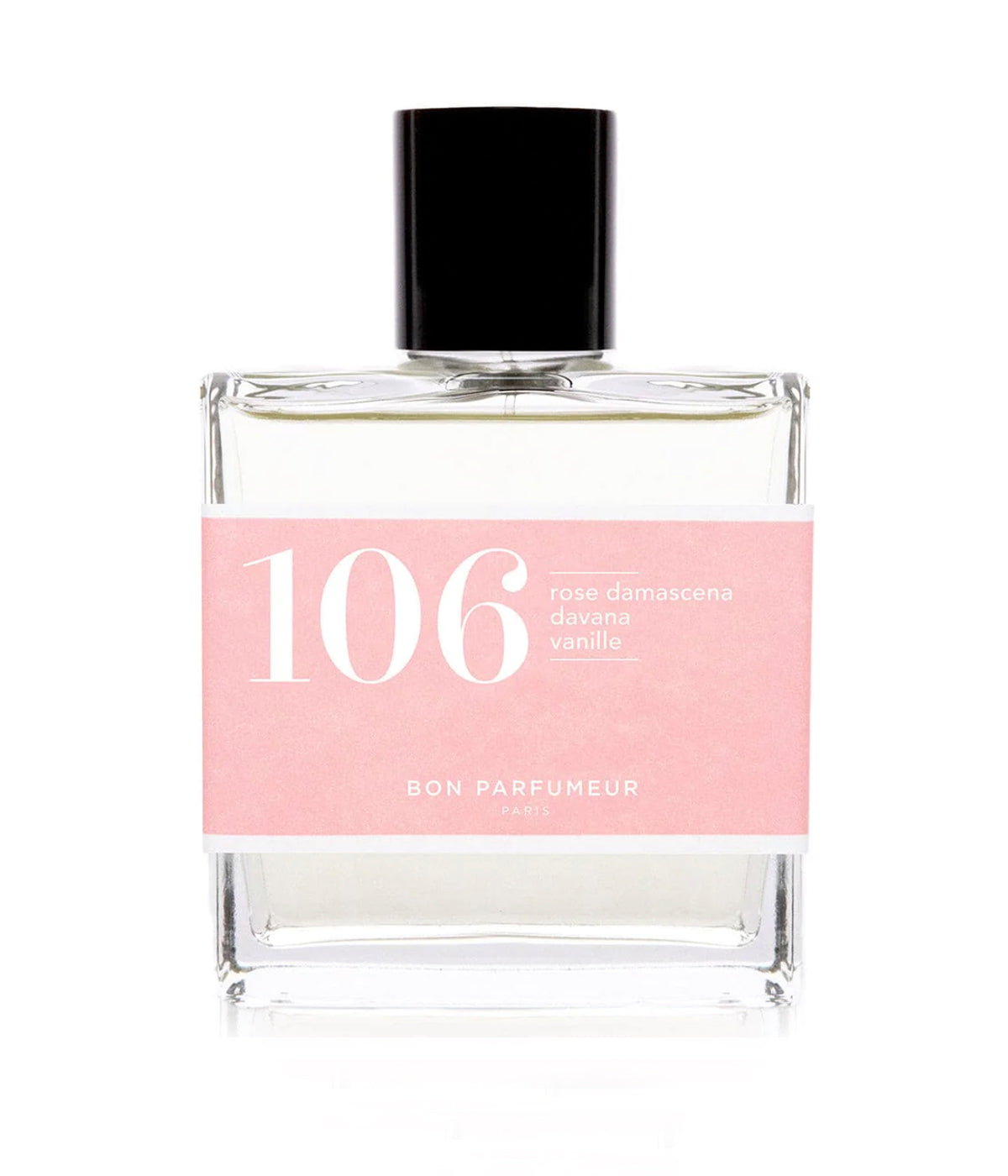 Enivrante et onctueuse, la rose Damascena du parfum 106 rayonne dans toute la fragrance. Une touche de poivre rose apporte une touche de fraîcheur. Les pétales de rose au toucher velouté se marient ensuite aux notes musquées et vanillées de la création.