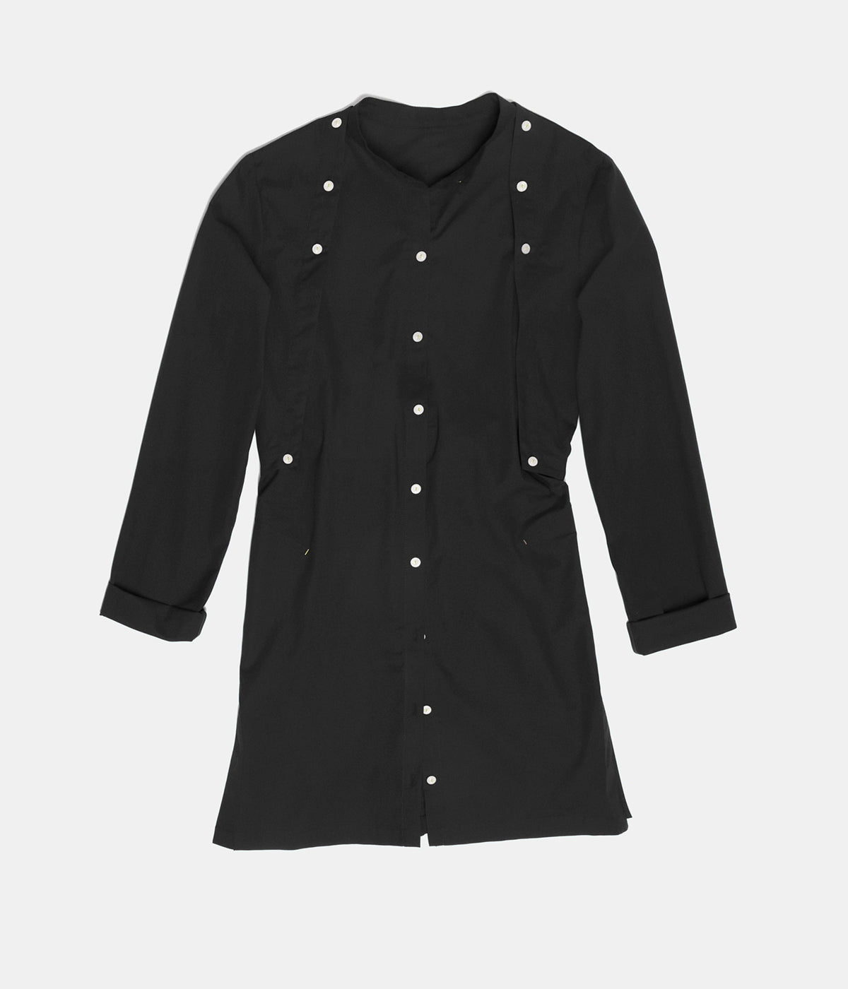 Uni-Dress est une chemise longue polyvalente qui peut être utilisée ouverte comme une veste longue ou fermée comme une robe. Il est fermé par des boutons en polyester recyclé naturel de 10 mm fixés avec un fil fluo. Les manches longues peuvent être retirées de l'épaule et utilisées comme une ceinture autour de la taille. Cela signifie que vous avez 2 pièces en une !