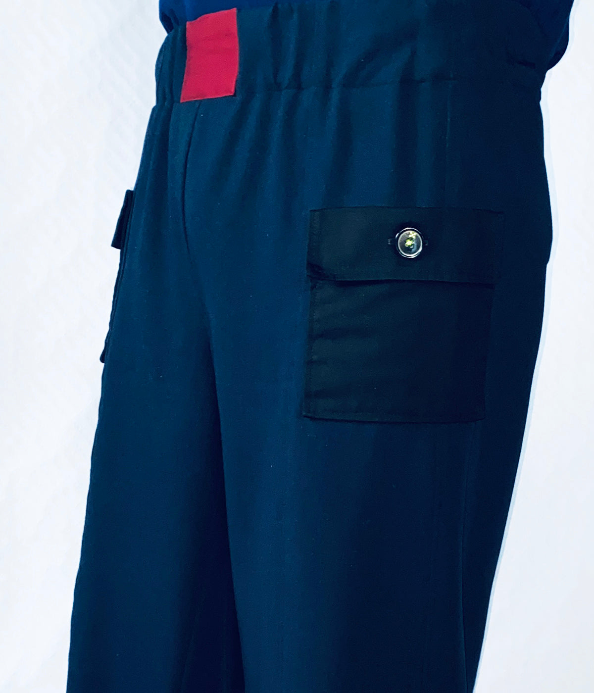 Atelier-pant is a super well down pant, without any zipper in the front and also with 2 front pockets. There are also lacets to help closing in the mid front.