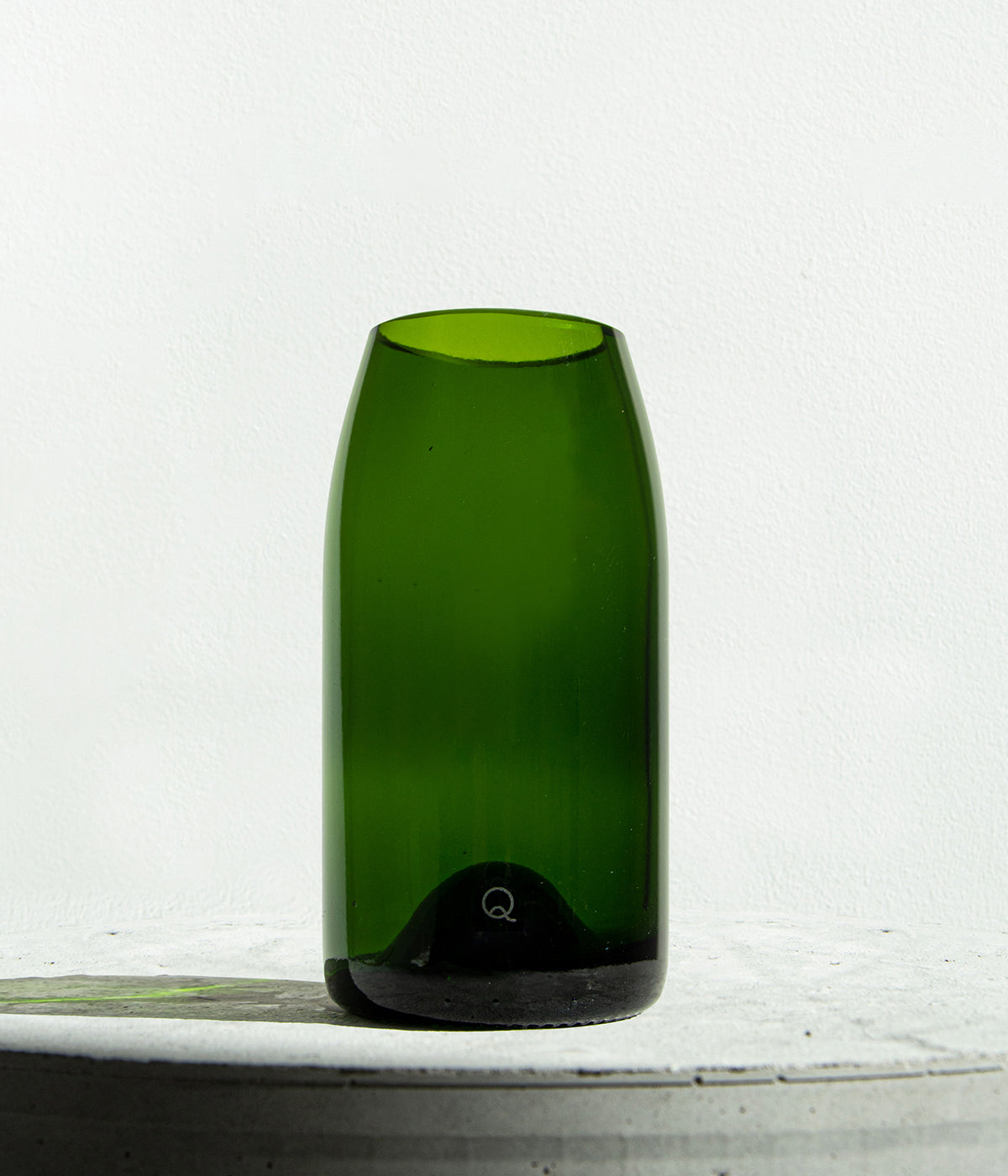 À l'origine de la marque Q Bottle, il y a une juste appréciation, un regard sur l'élément brut : la preuve d'une bonne idée. En découpant une bouteille pour en faire un verre, Q of Bottles recycle le verre, bien sûr, mais invente aussi une toute nouvelle histoire. Verres, vases, coquetiers, planches, bougies : sous son apparente simplicité, chaque pièce est unique.