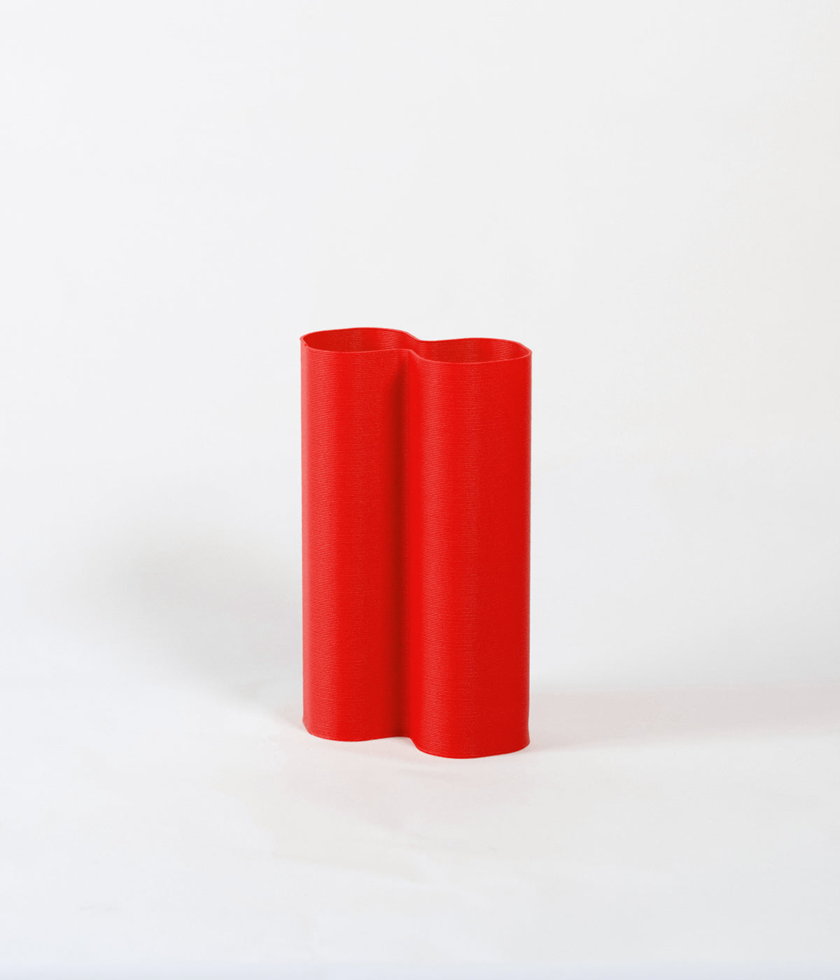 Cet objet est réalisé en impression 3D dans notre studio à partir de bouteilles en plastique recyclées et recyclables ainsi que de bioplastique compostable industriellement à base d'amidon de maïs (rPETG + PLA).