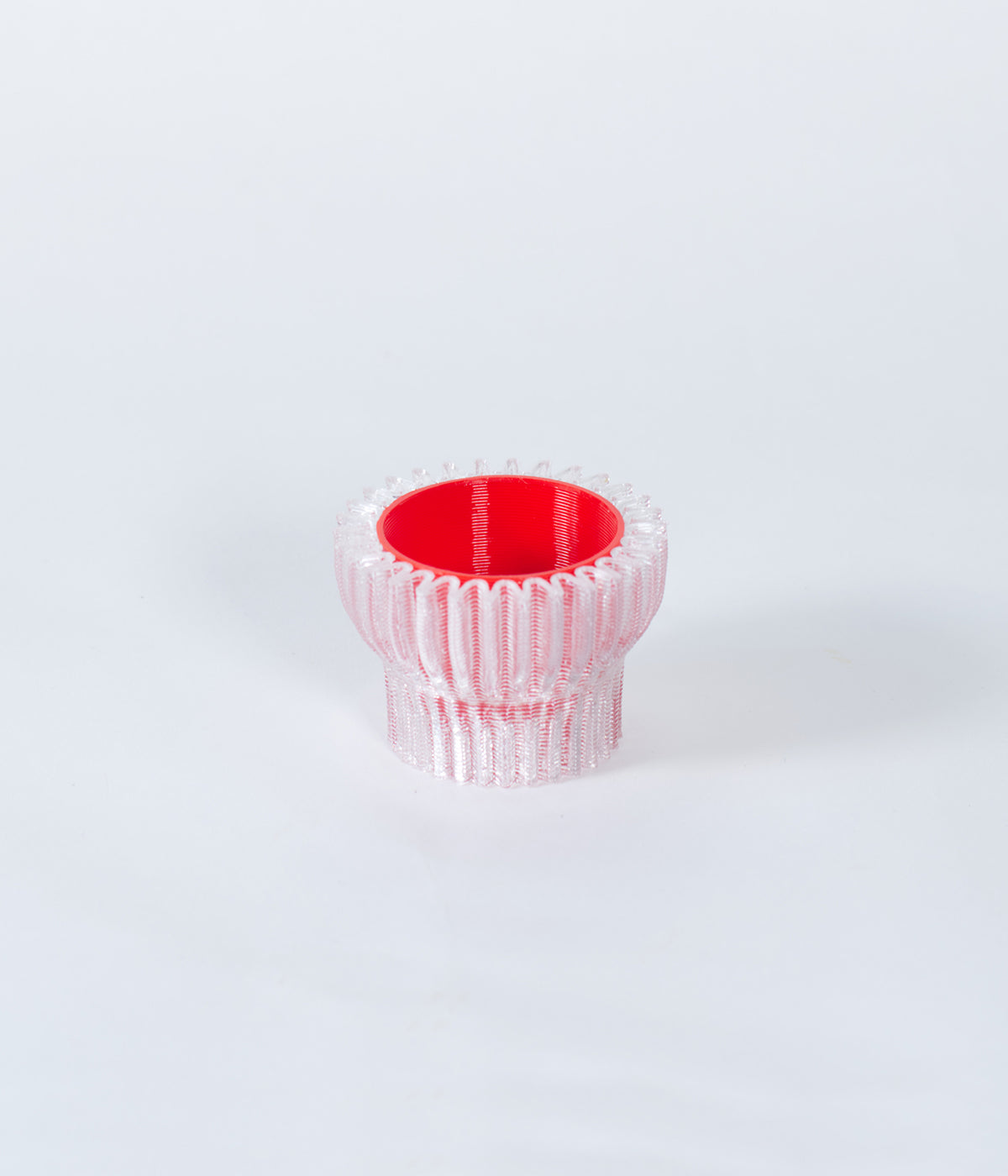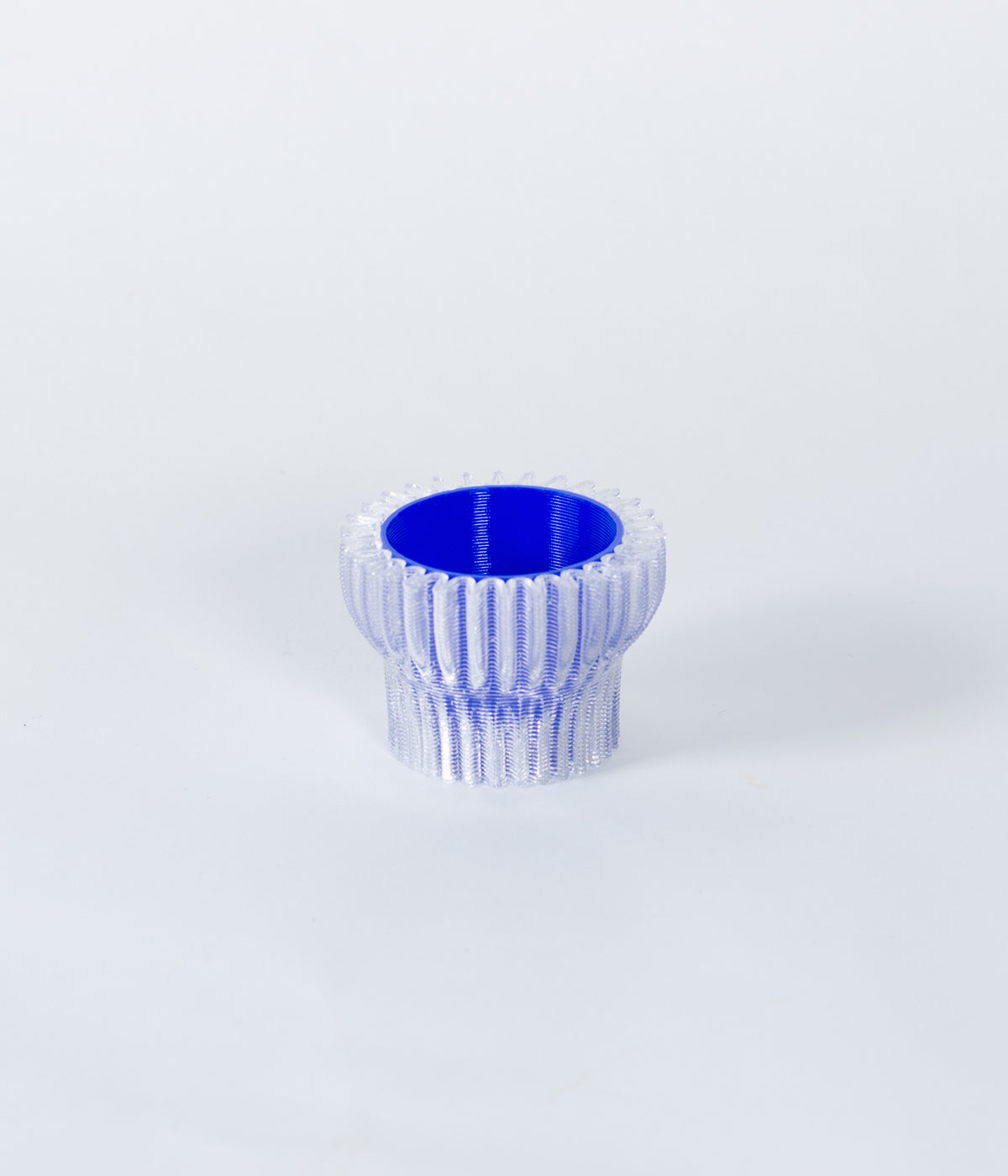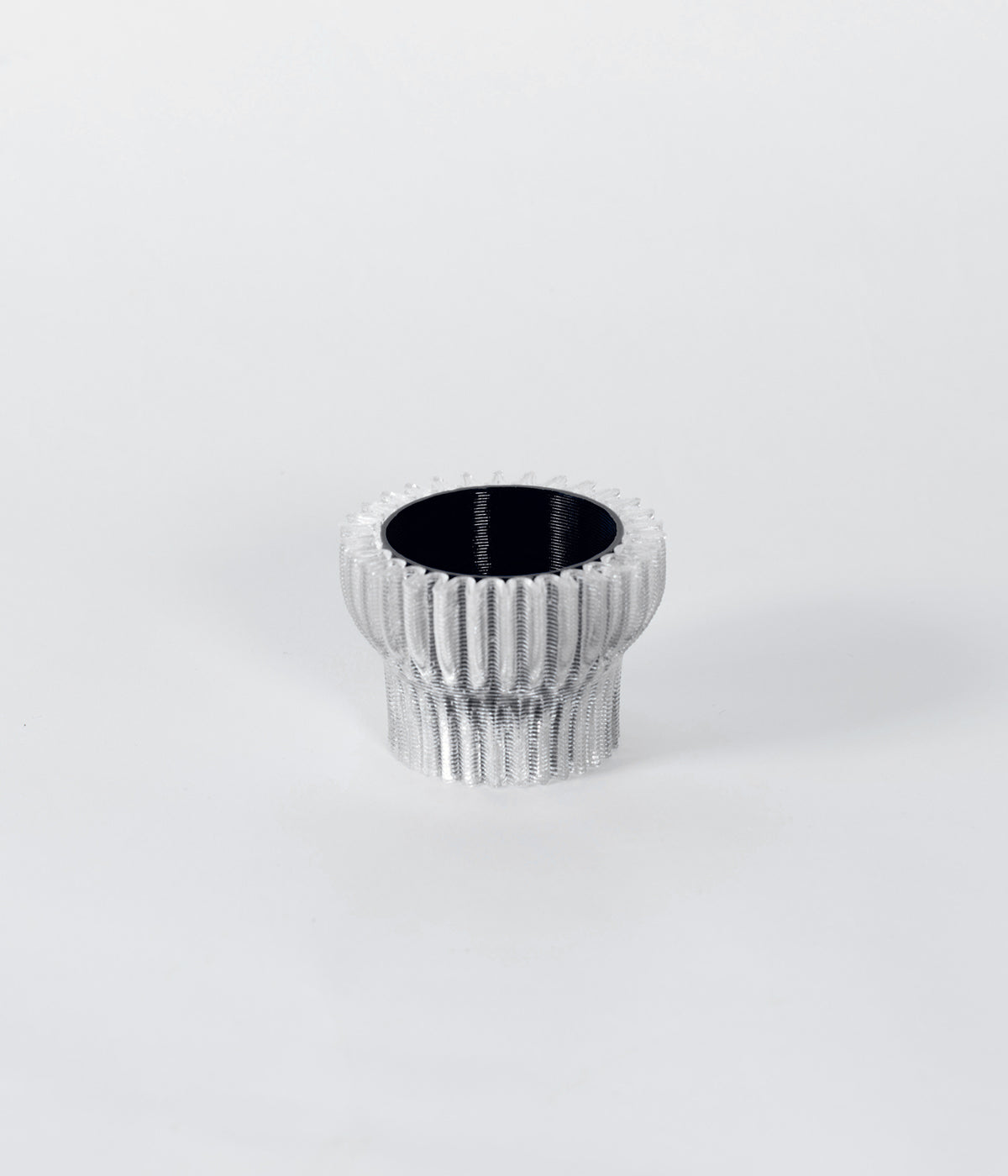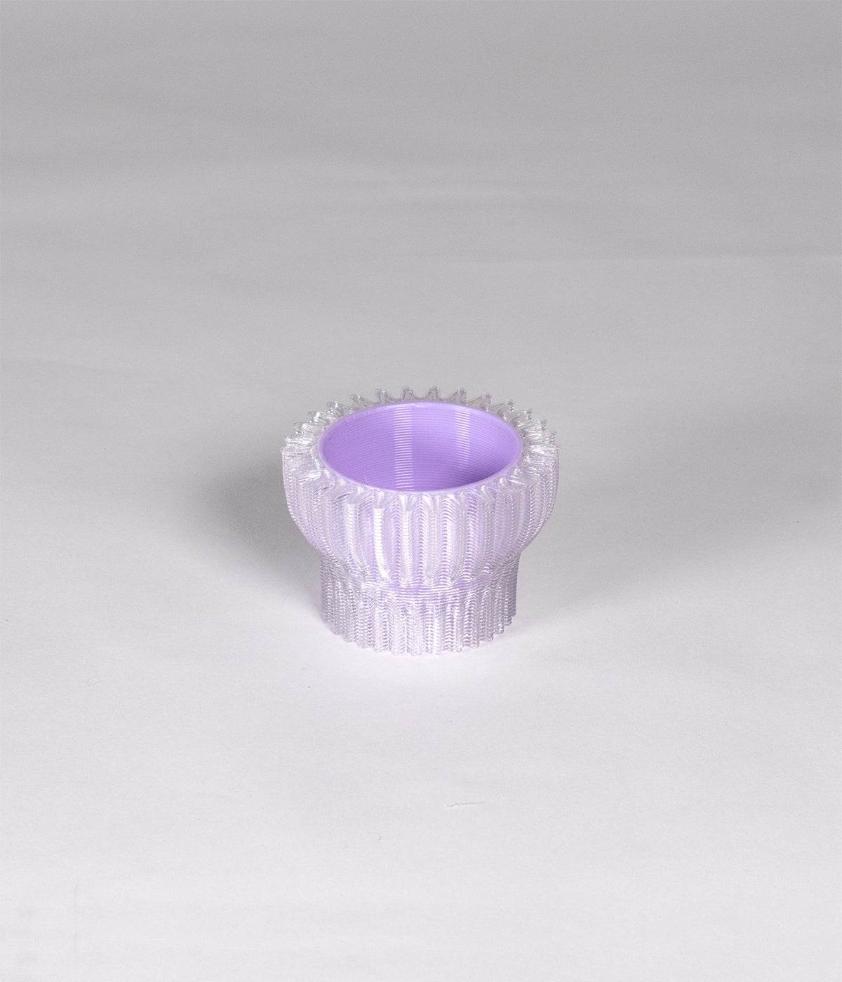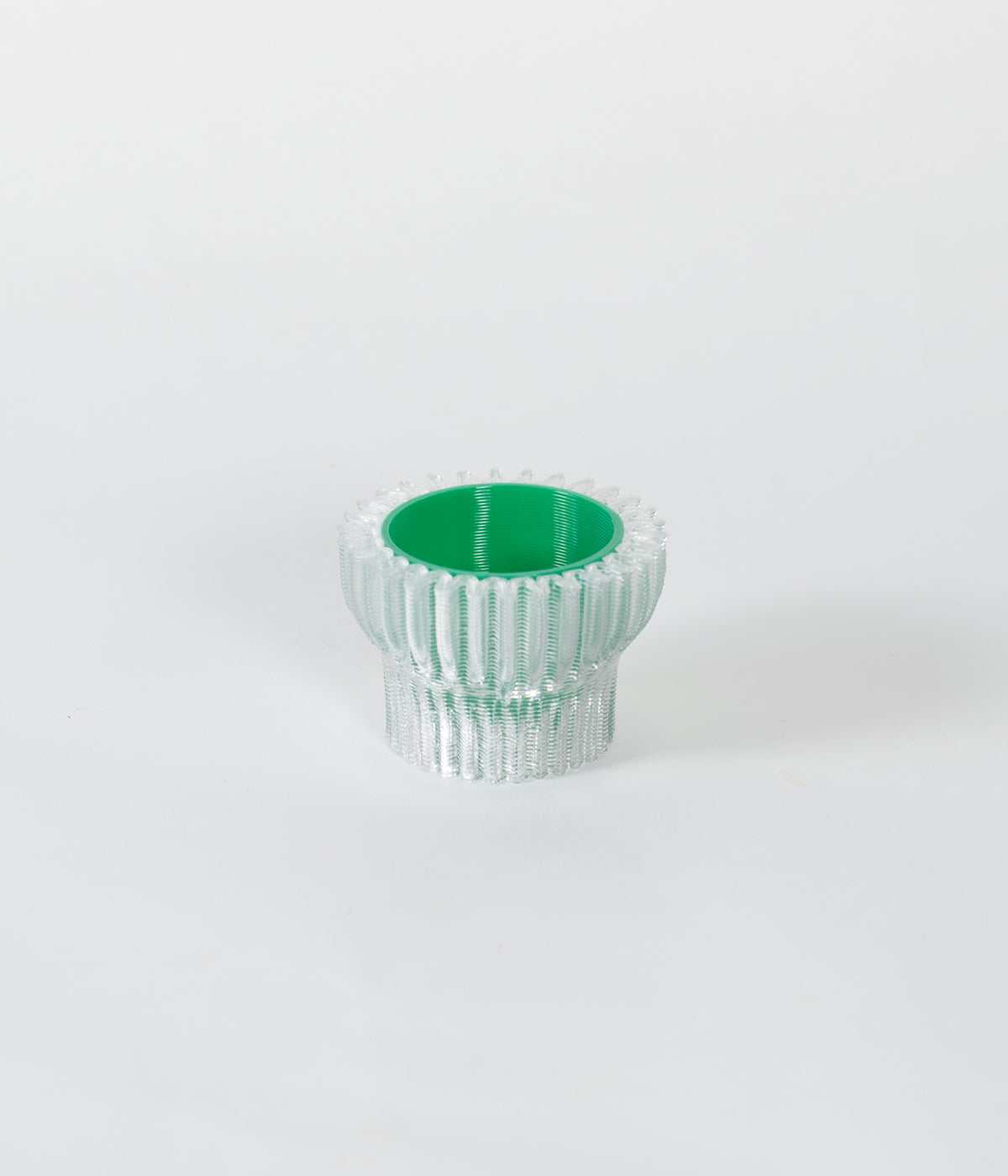 Cet objet est réalisé en impression 3D dans notre studio à partir de bouteilles en plastique recyclées et recyclables ainsi que de bioplastique compostable industriellement à base d'amidon de maïs (rPETG + PLA).