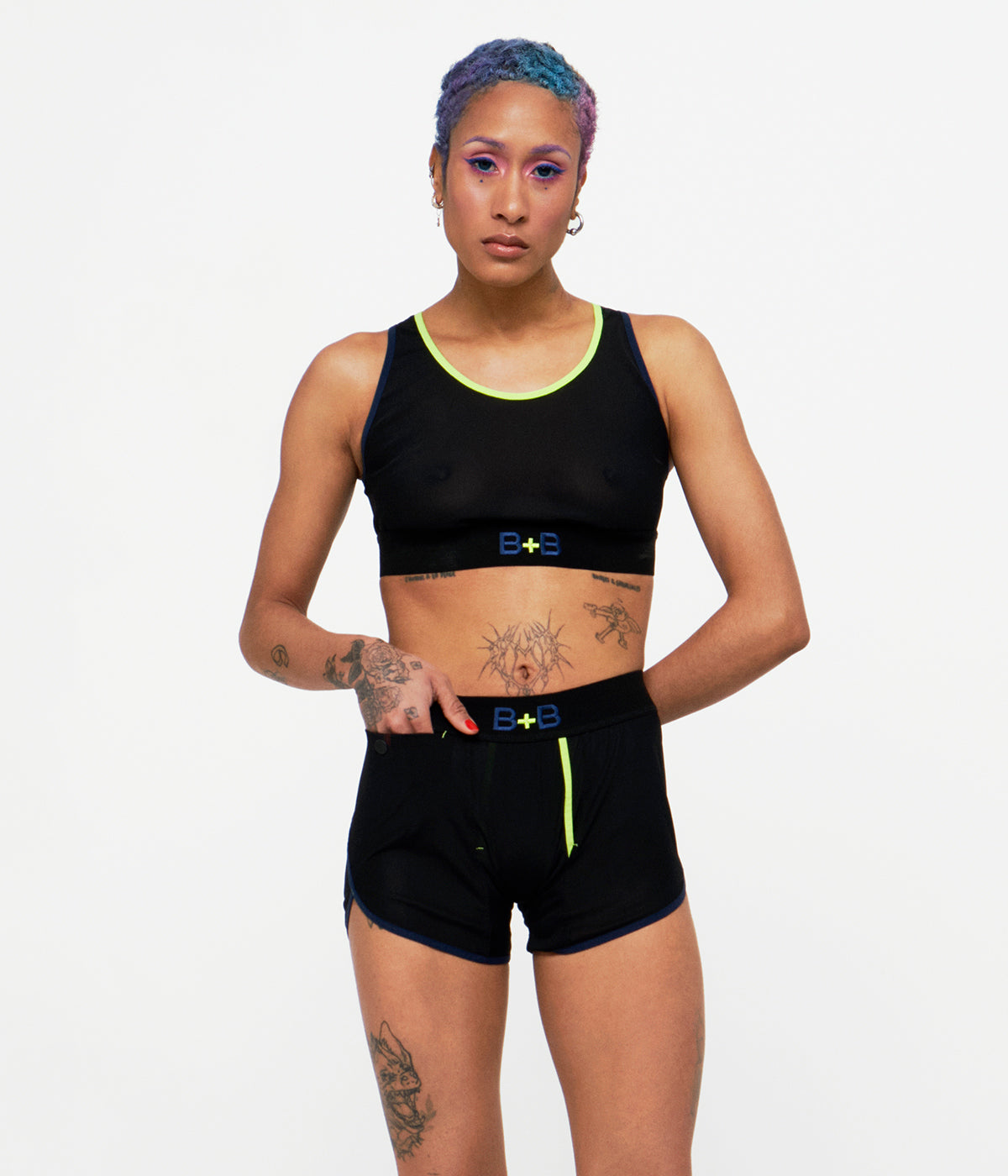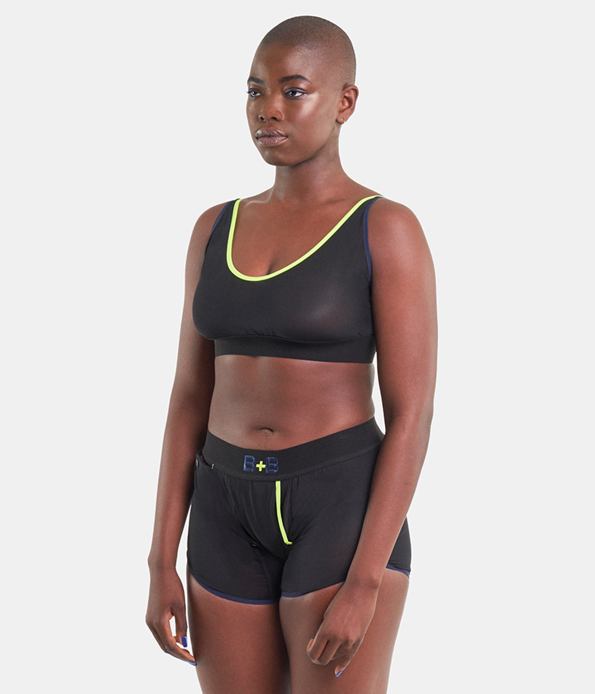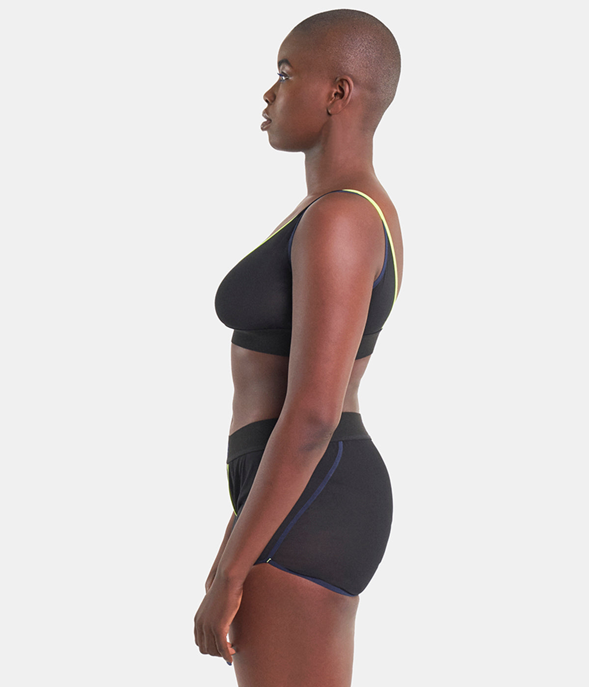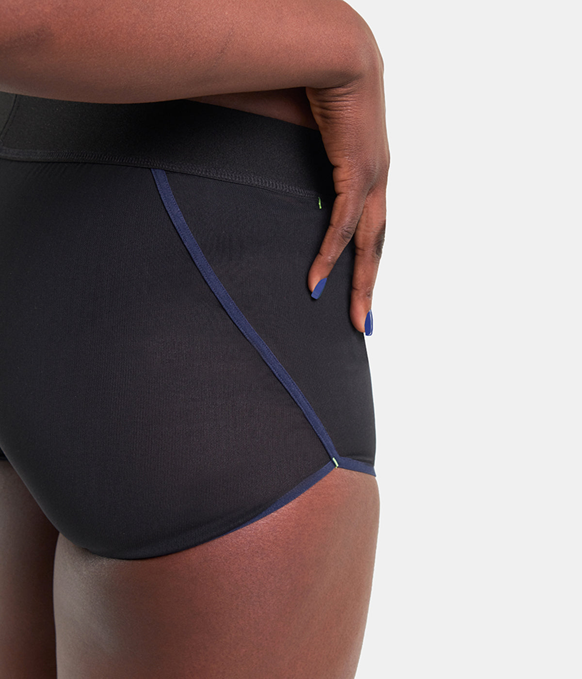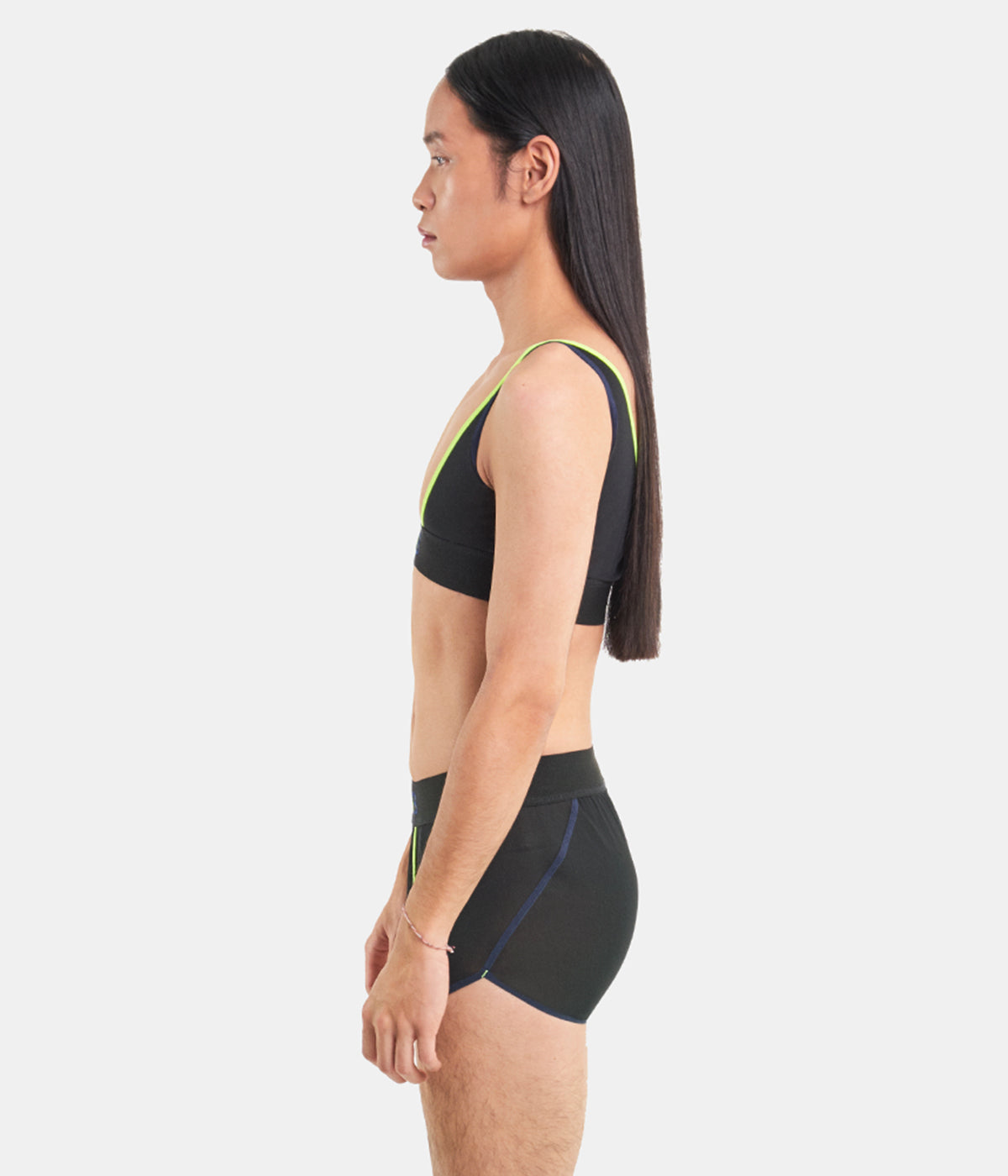 Le boxer Panty-Mid-Cut est un boxer à ouverture en Y, confectionné dans une maille italienne bi-extensible gainante. Le biais fluo et la broderie du logo sont des détails emblématiques de Minuit Deux. Le tissu TeK.03 offre une transparence subtile. Ainsi, même si la ligne TEK.03 Bodywear ressemble à un sous-vêtement, elle est également conçue pour être portée comme un vêtement d'extérieur.