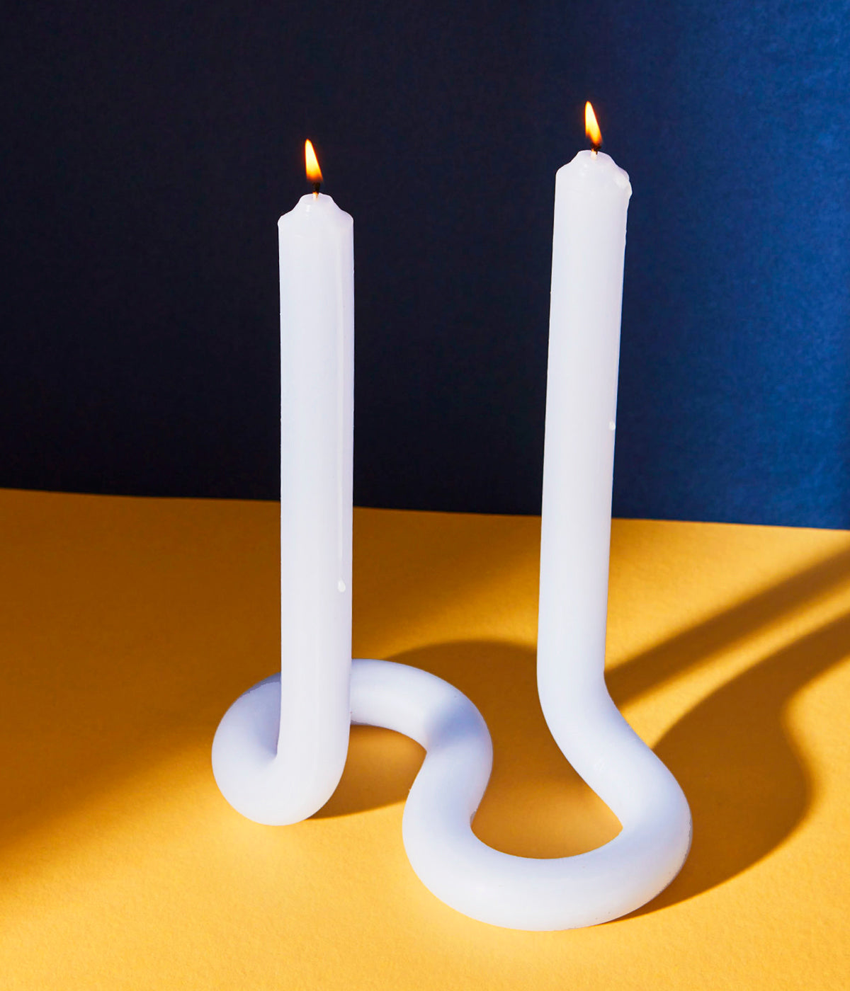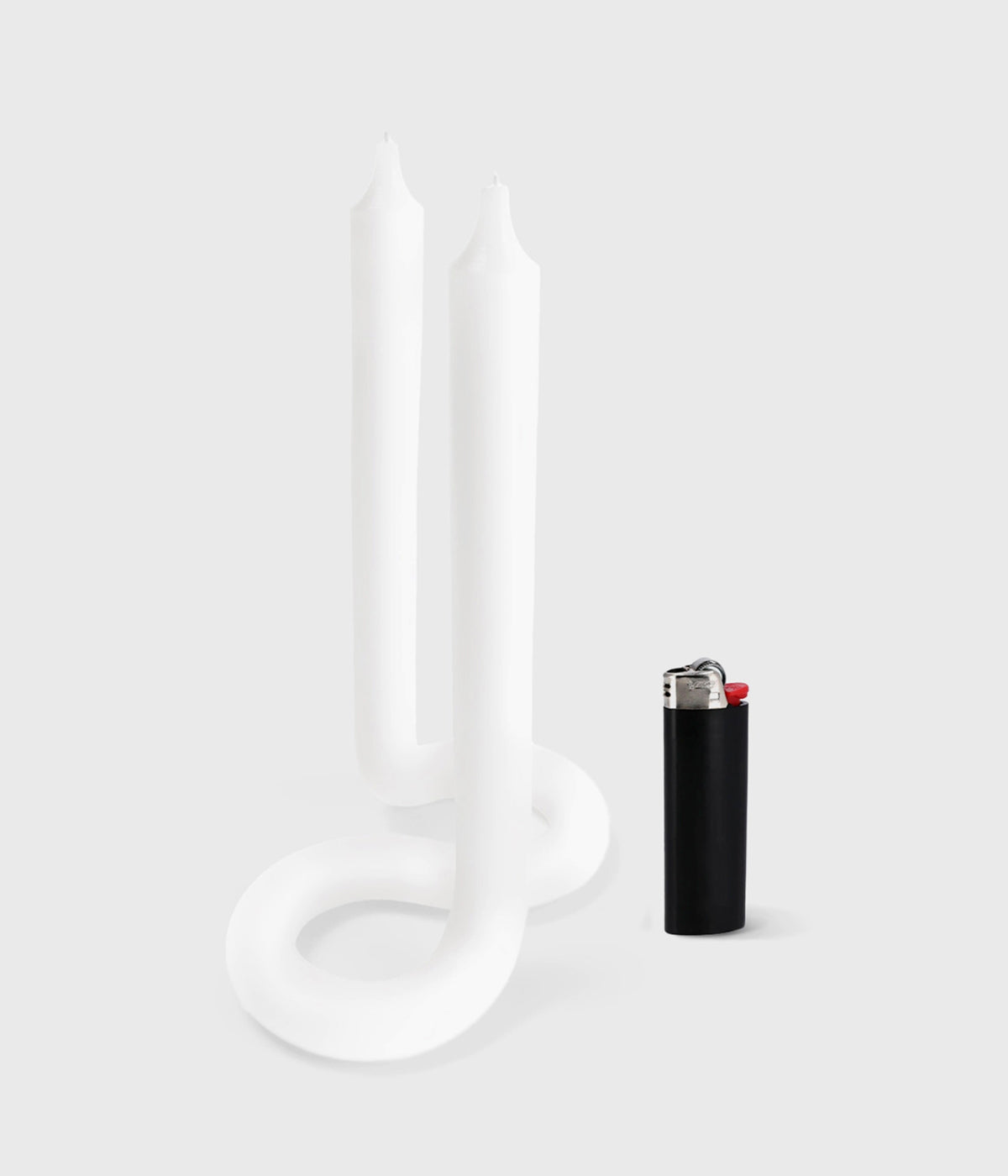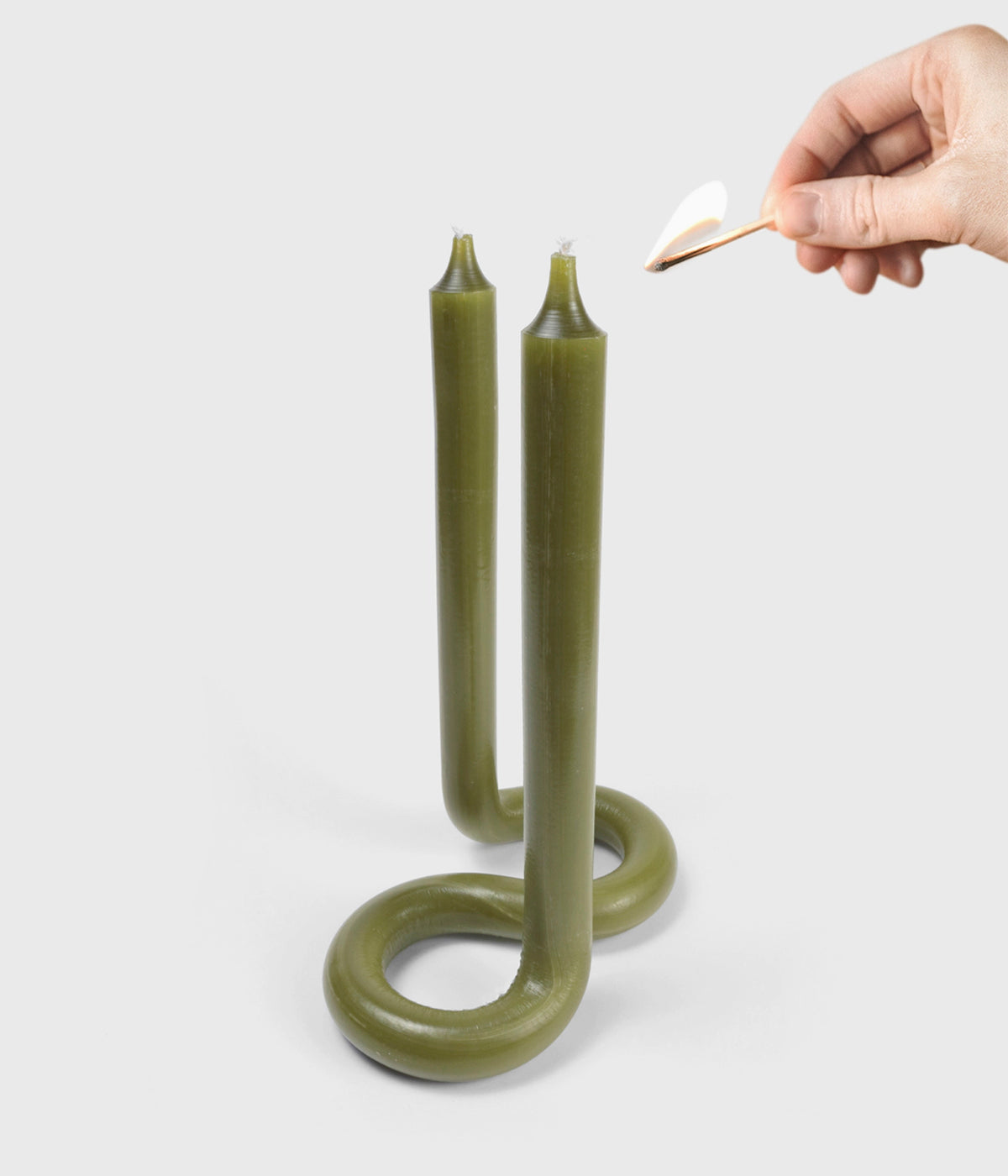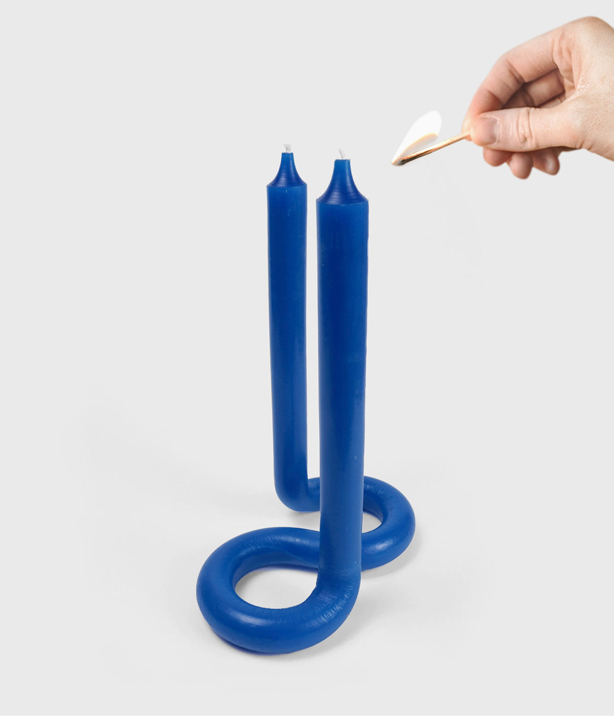 The twist candles use the flexibility of wax. Candles are usually straight and therefore need a base. In this project the designer combined both base and the candle in a single material shape. By bending and twisting candles a new typology appears combining form, function and fun. Each candle should have a burning time of approximately 10 hours.