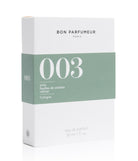 003 is a cologne with a vegetal scent. At first, this fragrance offers generous minty and zesty notes. Giving one a sudden and crazy desire for a mojito! Its delicate and fresh green tea notes bring an intoxicating lightness. The notes enhance the powdery white flowers. It is a cologne that hides its airy and soft woody playfulness. Elemi notes enhance all the facets of this addictive fragrance, both zesty and woody. A most refreshing olfactory journey.