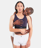 Sport-Bra is a top with scoop neck and black mesh panel. It is made from an Italian cotton jersey with a technical yet soft touch. As a sign of recognition, the wide elastic waistband is embroidered with the iconic Minuit Deux trademark. Produced in Europe, our B.01 everyday essentials are crafted from stretch cotton that brings comfort and extends the product's life. They perfectly fit men, women and non-gendered people, from XS to 4XL. Inclusive, classic and modern, comfortable and sustainable, this is our philosophy.