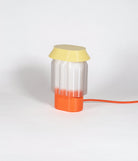 Designed to fit either a bedside table or a desk, this lamp combines functionality with a design inspired by the shape of a lantern. Wider than it is deep, it will fit perfectly into small spaces, while retaining sufficient light intensity to make it a true accent lamp. Nour is fitted with a colored textile cable to match its base, adding a neat finish to the lamp.